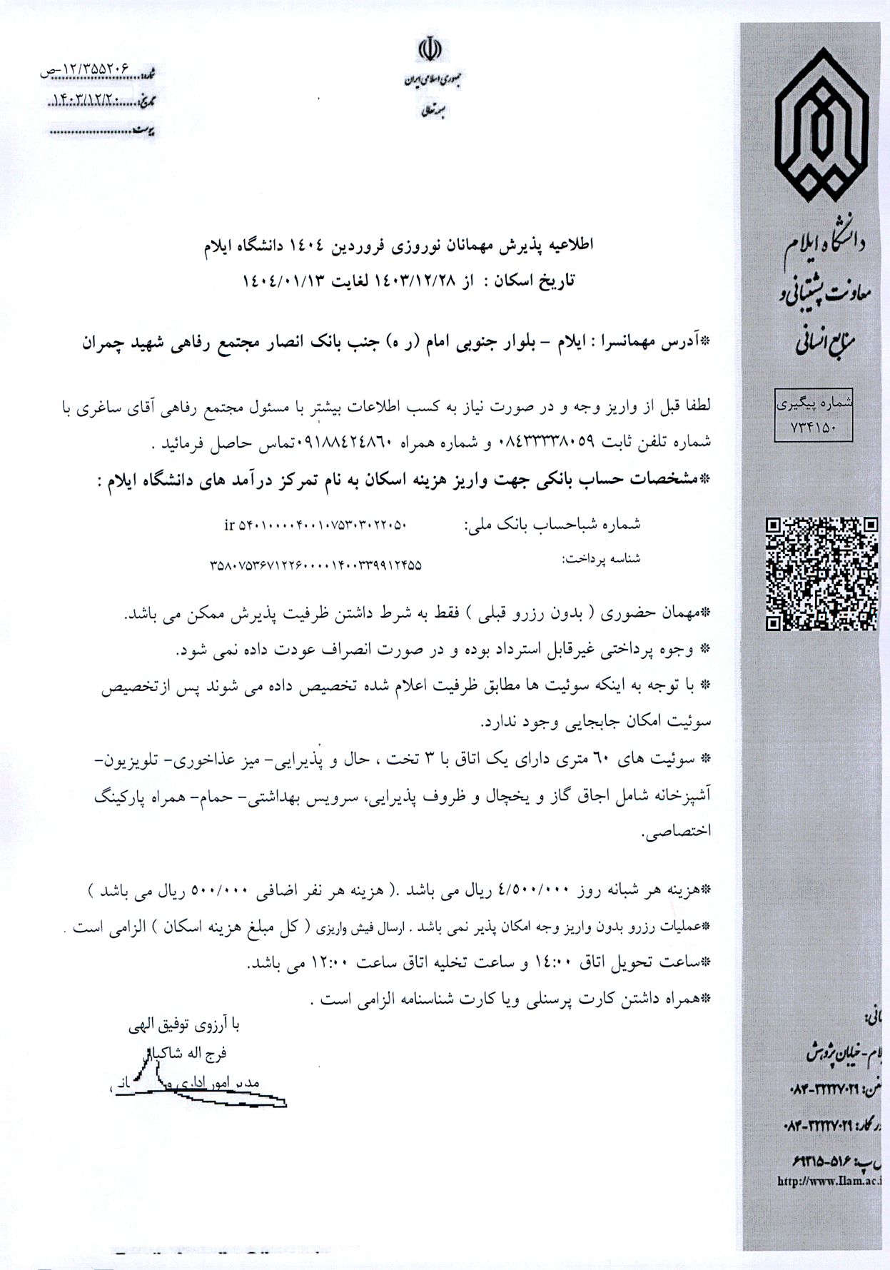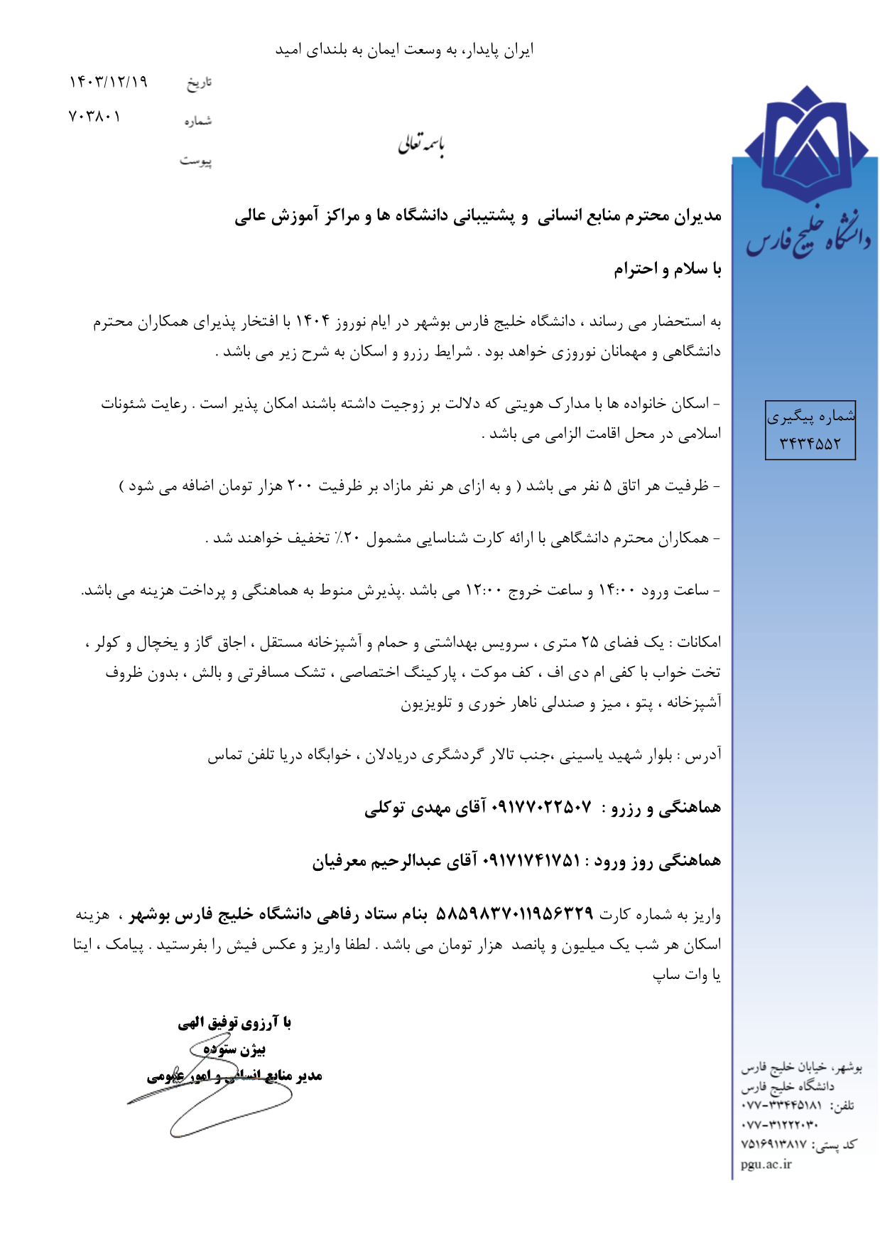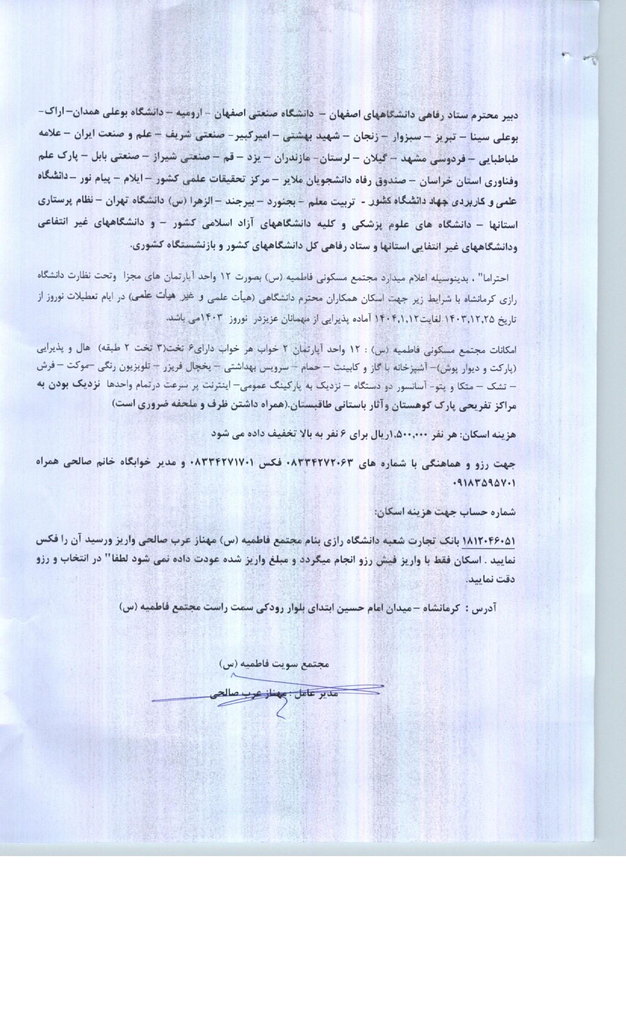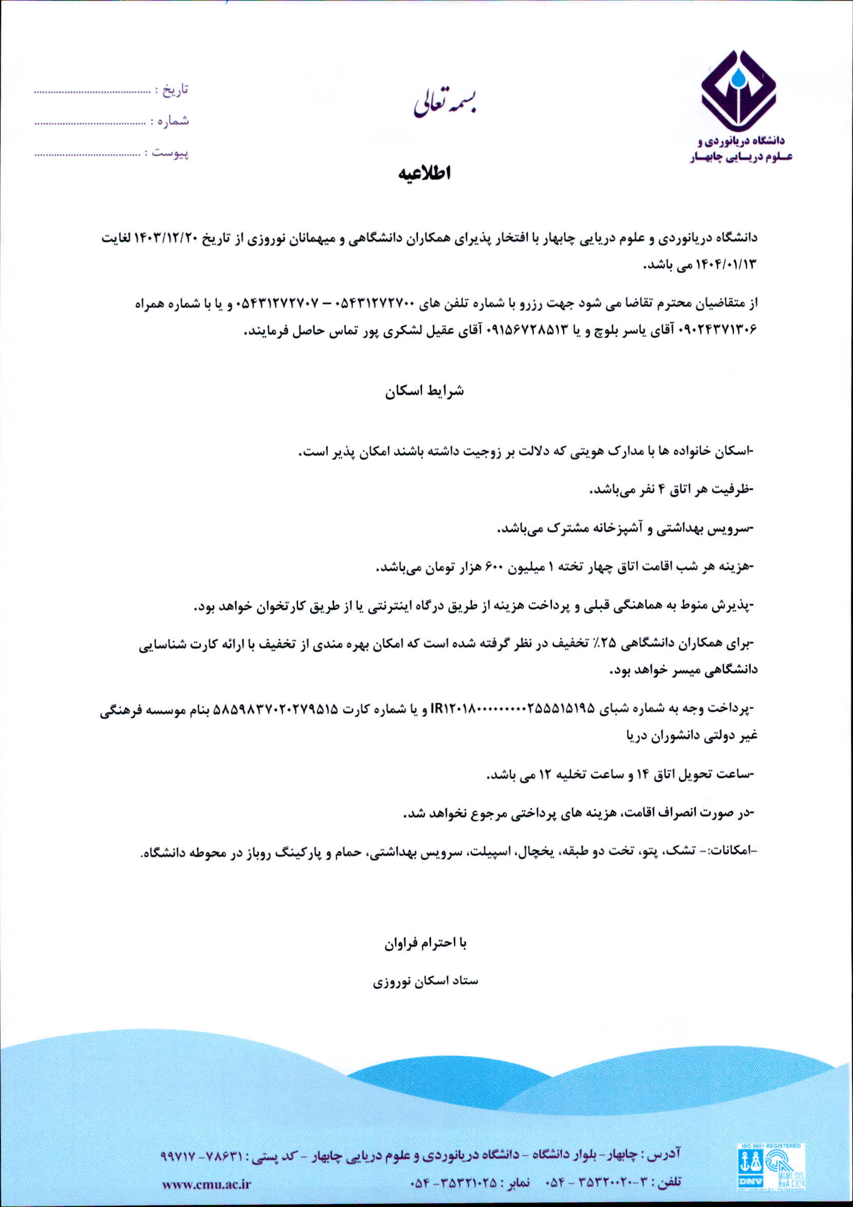 اطلاعیه ادارات رفاهی دانشگاه های کشور در خصوص نوروز 1404